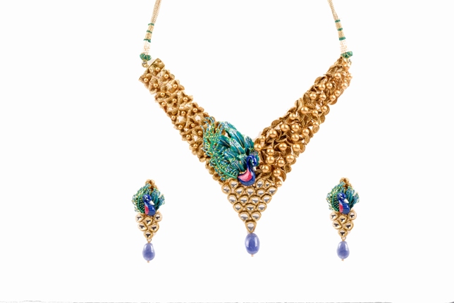 The handcrafted gold Peacock set has a very unique and exclusive design.