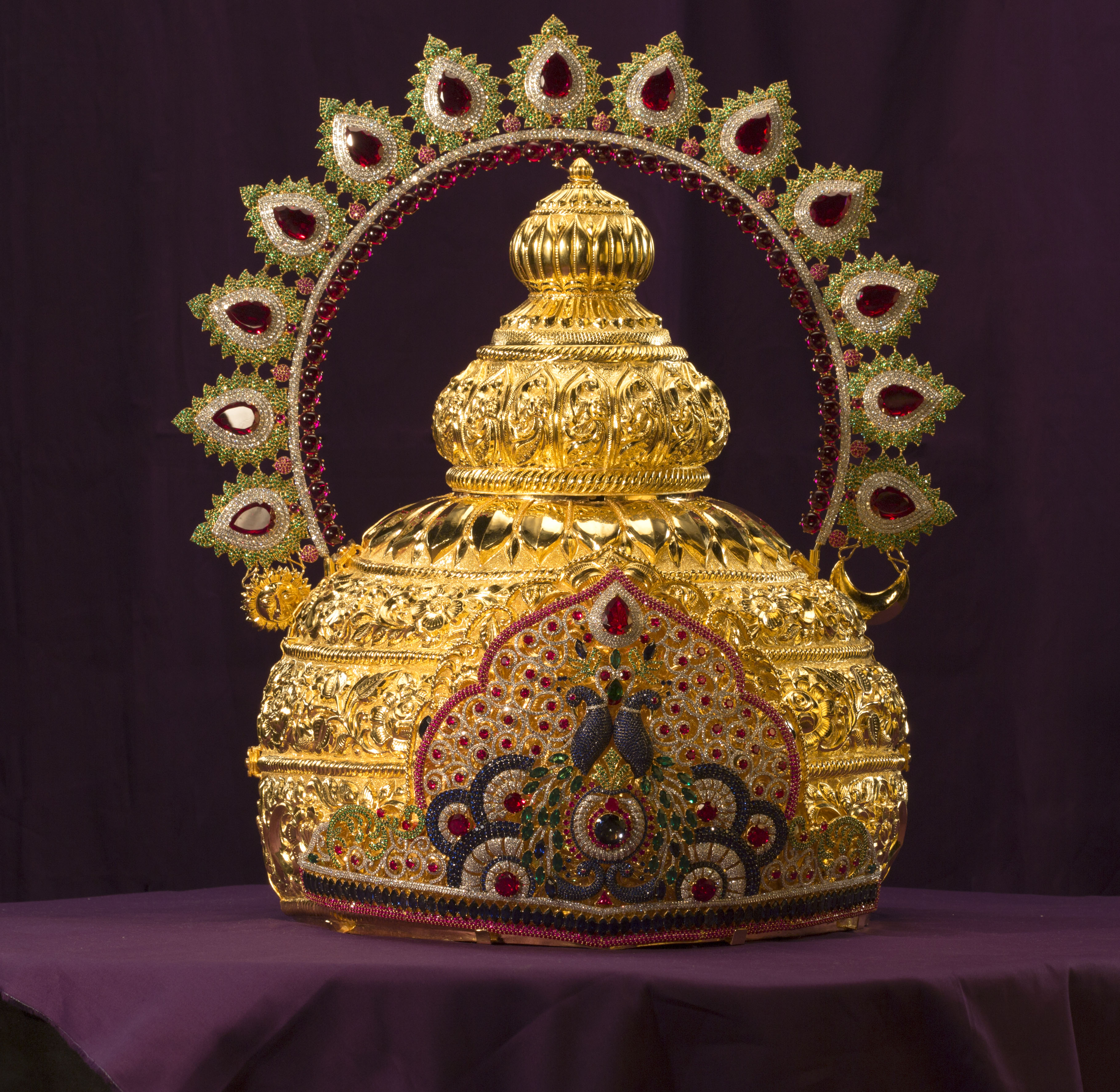Intricate traditional craftsmanship like Filigree work and Nakashi have been used to create these marvels. 7 different crowns has been created for Ganpati Bappa to be used every day of the Ganpati festivity. The ornaments include meticulously handcrafted Ganesh Mukut, 7 changeable Zali (front part of Mukut) and 7 changeable Prabhaval (net around the Mukut), Uparna, Angarkha, Pitambar, Kaan (ear), Shunda bhushan and a necklace.