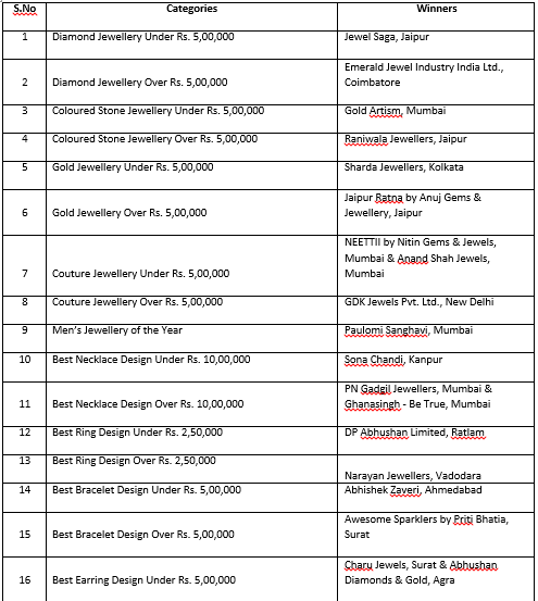 The winners of the 7th edition of JJS-IJ Jewellers Choice Design Awards 2016 announced in the gala award evening held on 23rd December 2017, at Crowne Plaza in Jaipur.