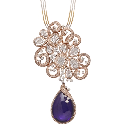 Renowned for its aristocratic charm, ANMOL celebrates the Pantone Colour of year 2018 by introducing Euphoria collection. Based in the eternal gleam of 18 K yellow & rose gold, the collection comprises of statement neckpieces, tantalizing cuffs and rings studded with tanzanite stones that exudes intense hues of ultra violet.