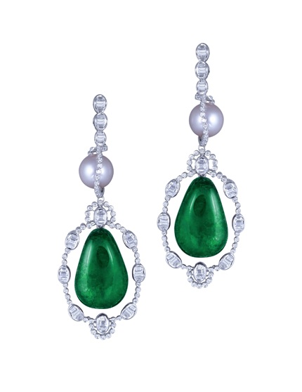 The artist describes his creations for this assortment to be dream-like and extraordinary. The design is unique in the way it is worn, experimenting with shapes and unusual materials, drawing inspiration from real and imaginary journeys of the Mughal Empire. Minawala aspires to make jewels that bring you great emotional as well as financial rewards. The high-on-design earrings featured here are crafted in 18K white gold, diamonds, tanzanite and emeralds.