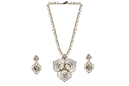 Bawa Jewellers unveils its stunning looking handcrafted Gold and Diamond Petal/Flower Pendant set ‘Mesmeric Charm’ in a very unique and exclusive design.