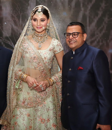 Mr. Vijay Jain (CEO and Founder Director – ORRA) with the absolutely gorgeous Urvashi Rautela looking stunning in ORRA Jewellery and Vikram Phadnis bridal wear at the Wedding Times Fashion Fiesta.
