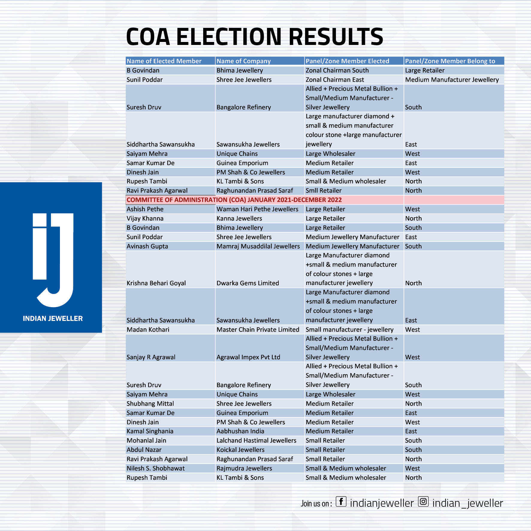 Please find below the list of elected members: