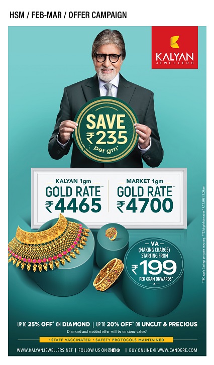 Customers can also avail discounts on the making charges with VA starting at Rs.199 per gram. These offers are valid until 31st March, 2022 at Kalyan Jewellers showrooms across India.