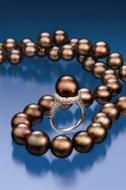 One of the main methods of identifying “chocolate pearls” is visual: Natural-color brown cultured pearls rarely show the intensity or uniformity of color exhibited by their “chocolate” counterparts. Natural-color brown cultured pearls also show more orient and/or rosé overtone than do Caps.%%It is generally understood that pearl colors are produced by organic components between the calcium carbonate (aragonite) platelets of which pearl nacre is made. Our study suggested that these components are altered during treatment. The alteration is indicative of a bleaching process, resulting in the “chocolate” colors. While the mechanism is not fully understood, this alteration may be responsible for the characteristic differences in long-wave UV fluorescence between the natural-color and treated “chocolate” cultured pearls.%%The study also found no evidence of a foreign coloring agent in the Caps, which is invariably present in the silver-dyed pearls. Because silver dye strongly absorbs light, dyed pearls are inert to short- and long-wave UV radiation. UV-Vis-NIR reflectance spectroscopy also provides good evidence that a bleaching process occurs with the Caps and, if the instrumentation is available, supplies information that is useful for identification.%%Although it is likely that the various producers of “chocolate” cultured pearls worldwide use more than one method to induce a brown color in their products, this study provided important answers for the characterization and identification of Ballerina “chocolate pearls.”