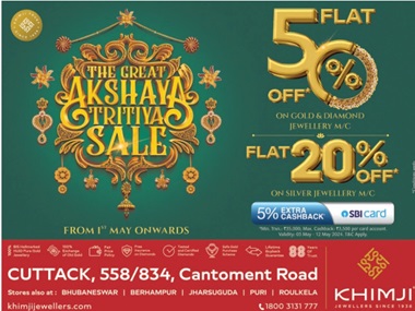 Mitesh Khimji, Managing Director of Khimji Jewellers, expressed the sentiment behind this exclusive offer, stating, " This is by far the biggest sale we have ever offered in the Odisha market with a flat 50% discount on the complete range of gold and diamond jewellery making charges. As we celebrate Akshay Tritiya, we are thrilled to extend this exclusive deal to our valued customers starting this month. Additionally, we are happy to offer a 20% discount on making charges of silver jewellery as well. Our brand, with a relentless focus on customer satisfaction, strives to exceed expectations by catering to unique preferences and needs. We anticipate good footfalls this Akshay Tritiya, the rates have stabilized in the past week at around ~ 6,600 per gram for 22 Karat and we expect people to take the benefit of this offer and invest in gold further."