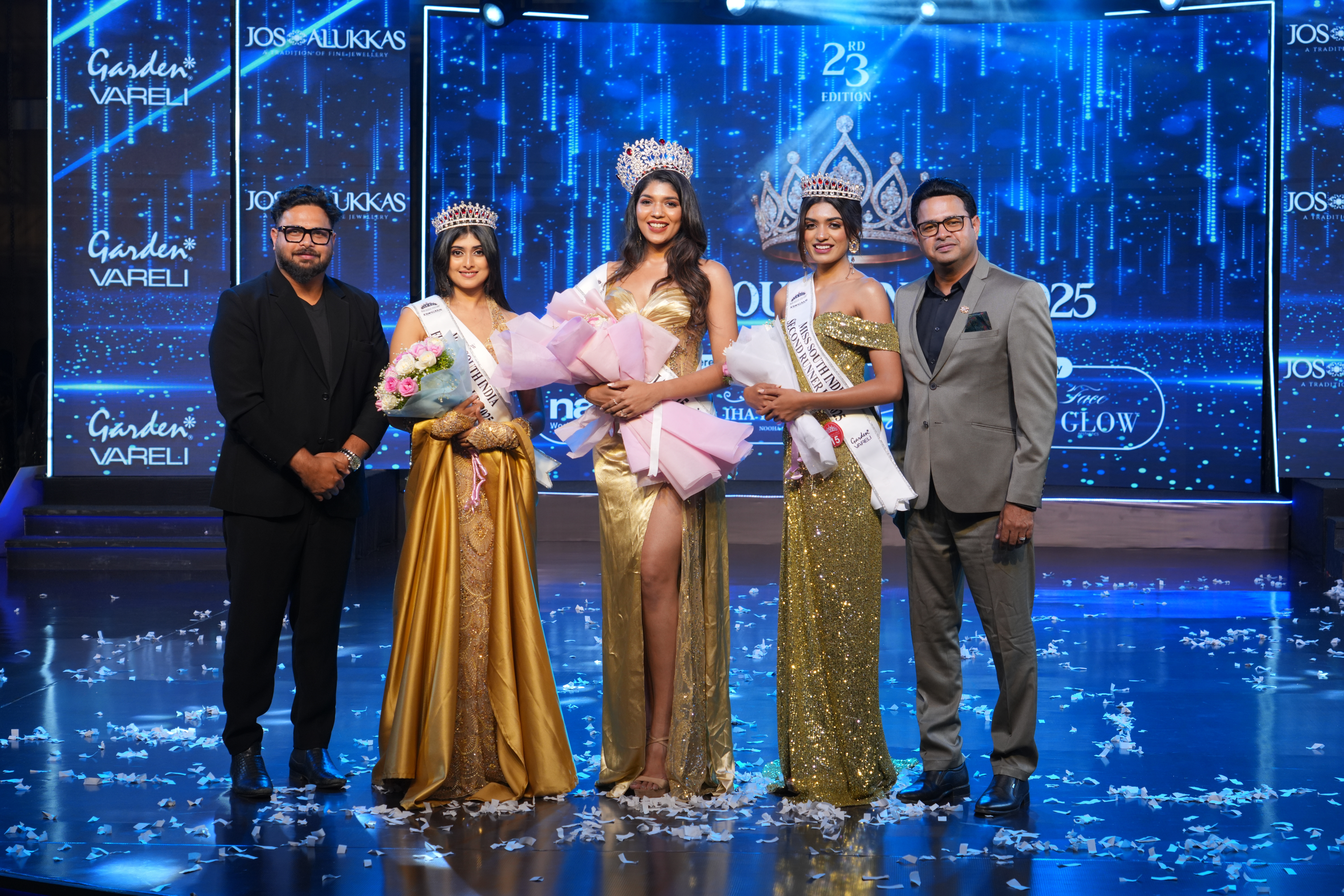The 23rd edition of Miss South India 2025 unfolded in Bengaluru with grandeur, celebrating the rich diversity, confidence, and elegance of women from across the southern states. Ms. Liz Jaymon Jacob was crowned Jos Alukkas – Garden Vareli Miss South India 2025, while Aishwarya Ullas and Ria Sunil were named first and second runners-up, respectively.