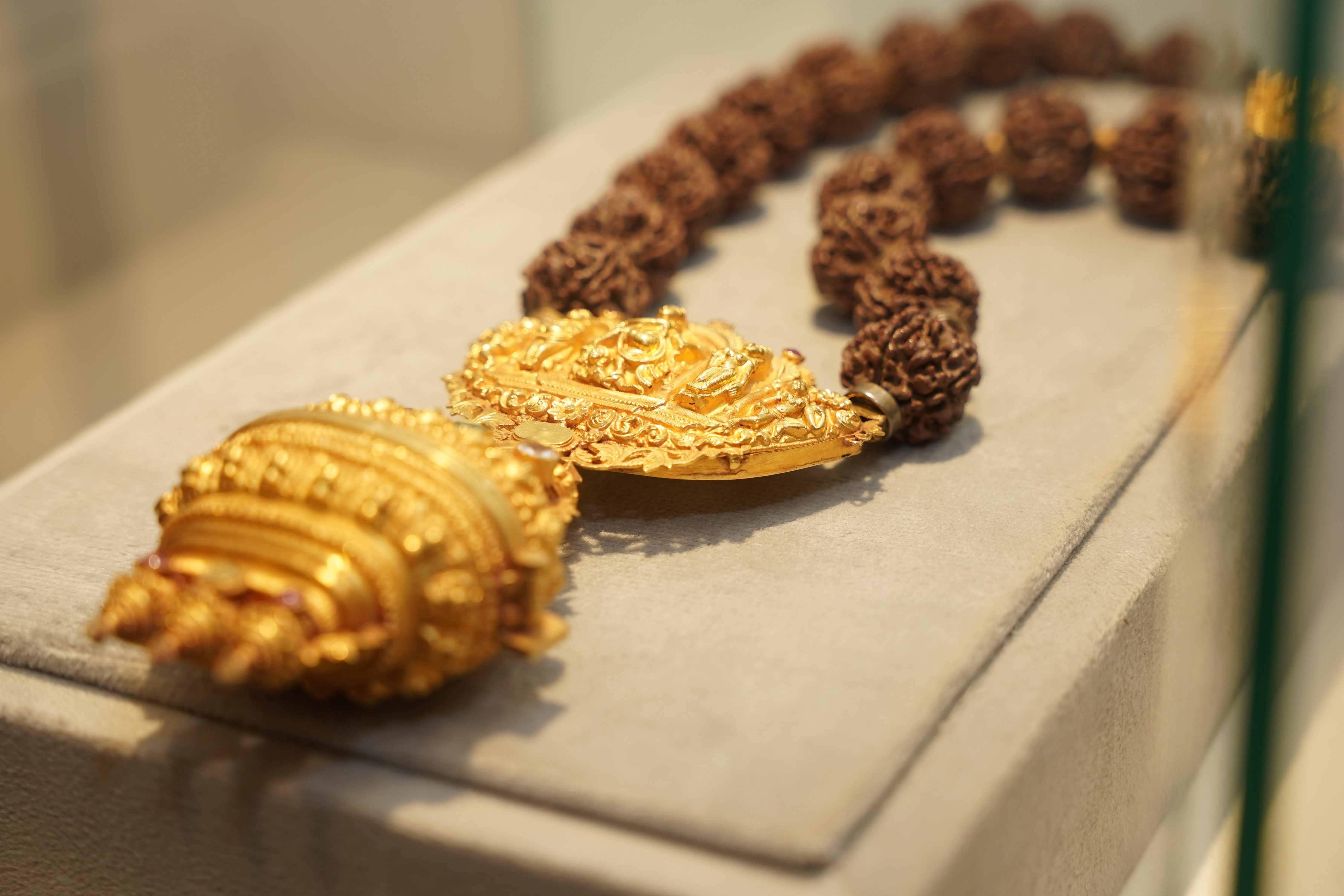 The second floor showcases three distinct genres of jewellery: authentic Chettinad ornaments, exquisite reimagining of regional artistry from various states of India, and sleek yet statement-making modern designs. On this floor of Pettagam, classic kandacharams, poocharams, and mullaicharams from Chettinad are juxtaposed with incredible adaptations of the rich Kasumala of Kerala, the attractive Arakku temple jewellery of the Chola and Pandya kings, the intricate Jali wrist adornments from the Mughal era and the opulent Kundan necklaces from the royal courts of Rajasthan. And then there is jewellery that makes seemingly impossible demands on the technology used to create it—in this section of the museum, modernity takes over.