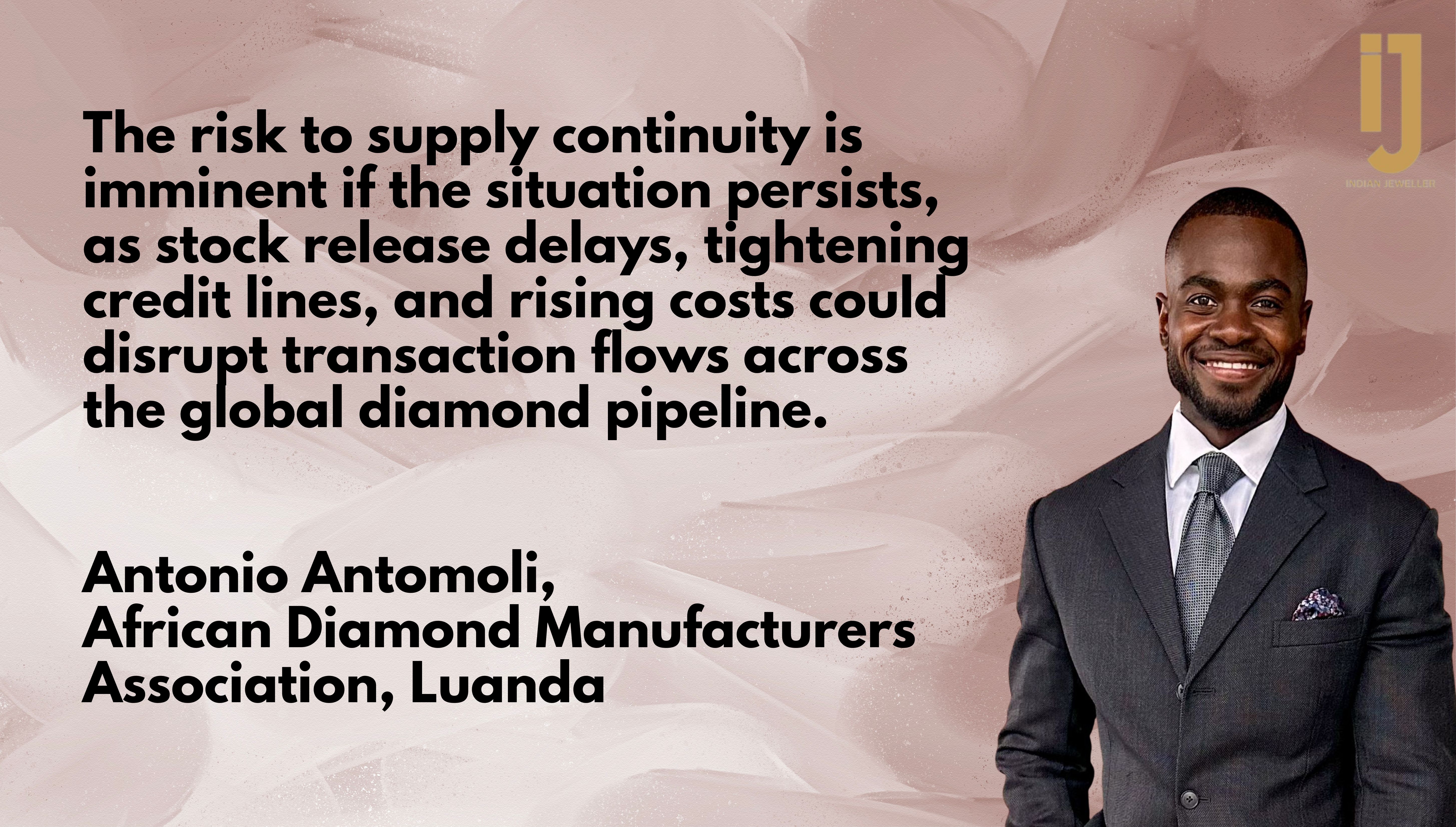 Luanda-based industry analyst Antonio Antomoli, who is also the president of the African Diamond Manufacturers Association (ADMA), observes, “The risk to supply continuity is imminent if the situation persists, as stock release delays, tightening credit lines, and rising costs could disrupt transaction flows across the global diamond pipeline.”