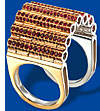 The Cygnus counter sells single gemstone designs. "Sets don't sell well. It's the season for diamonds and color stones are subdued," says Deepak of Cygnus at Pantaloons. The Cygnus collection is priced between Rs.5000-Rs.50,000. Inter Gold has a showcase full of spiritual displays by designers. The range is Rs.5,000- Rs.30,000. Only well informed buyers who know about these collections and value the importance of Rudraksha, Shankha and such elements buy the collection. Where daily wear jewellery is concerned there is demand for clusters and small sets sell but there is no demand for heavy stuff at the counter. "It's very rare for people to ask for heavy stuff. I usually tell them to visit our show rooms. They get more variety and better choice there. %%