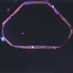 A DiamondView image of a CVD diamond plate from LIMHP-CNRS (0.50 mm thick after substrate removal and polishing, 0.12 carats, E-color.