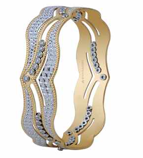 The exquisite collection of bangles, crafted by the finest artisans of India is a highlight of this festive season. Each piece of this fine collection, captured in Gold emits poignancy and intricacy in its opulence. It entrusts a lustrous and dazzling feel, bestowing an impression of a rare appeal and an everlasting aura. These bangles bring royalty to the wrist that adorns it this festive season. %%