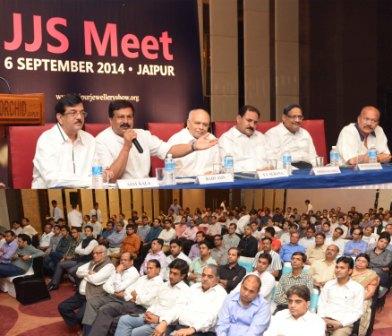 Popularly known as the ‘December Show’, the Jaipur Jewellery Show (JJS) will now be organized at the newly created Jaipur Exhibition and Convention Centre (JECC) at Sitapura from 20 December to 23 December this year.%% On the occasion of the exhibitors’ meet of the 12th edition of the JJS – the Convener, Mr. Vimal Chand Surana said that for the past 10 years the show was being organized at the Hotel Rajmahal Palace. However, owing to the ever increasing popularity of the event with more and more participants the venue did not have adequate space to accommodate all the exhibitors. Each year there used to be a long waiting list with some jewellers being deprived of participation. At the new venue with JECC having all the modern amenities, it is envisaged that the JJS can increase to the tune of 25% each year, said Mr. Surana. %% The Secretary of the JJS, Mr. Rajiv Jain informed over 250 jewellers at the Exhibitors’ Meet that the JECC will have a whopping one lakh square feet pillar less hall in which as many as 500 booths will be setup. The exhibitors at the show this year will find better flooring, lighting, carpets, lounge as well as parking and toilets facilities. As many as 5000 cars can be parked and the security arrangements will be further enhanced. %% It is to be recalled that the exhibition site, which is 17 km from the Ajmeri Gate on the Tonk Road, is the same venue where a number of Stonemarts have been organized. Mr. Jain further informed that a shuttle service will operate on each day from Ram Niwas Bagh, Investment Ground and Ram Leela Ground to take the visitors to the show site. %% Earlier in the beginning the Joint Secretary and the Media Coordinator of JJS, Mr. Ajay Kala said that during the show jewellery, stones, publications, machineries will be displayed. In fact, there will be a separate section for machineries. The new venue will take the JJS to a new level, said Mr. Kala.