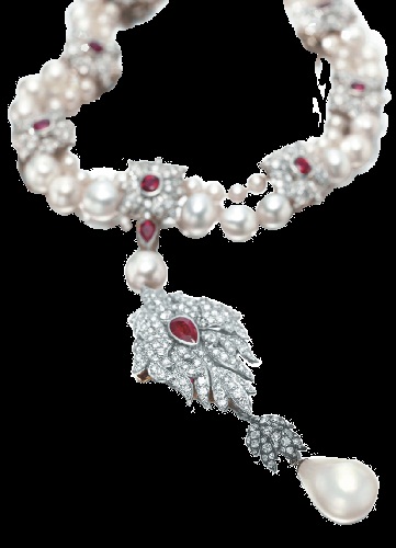 The collection features pearl necklaces designed intricately with the pure gold, diamond, emerald and other precious stones.