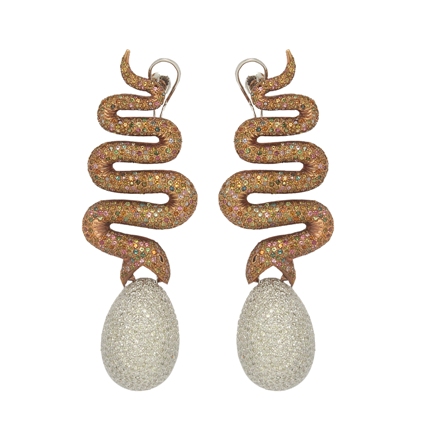 Finely crafted sets in 18K gold, embellished with uncut diamonds and round brilliant diamonds.